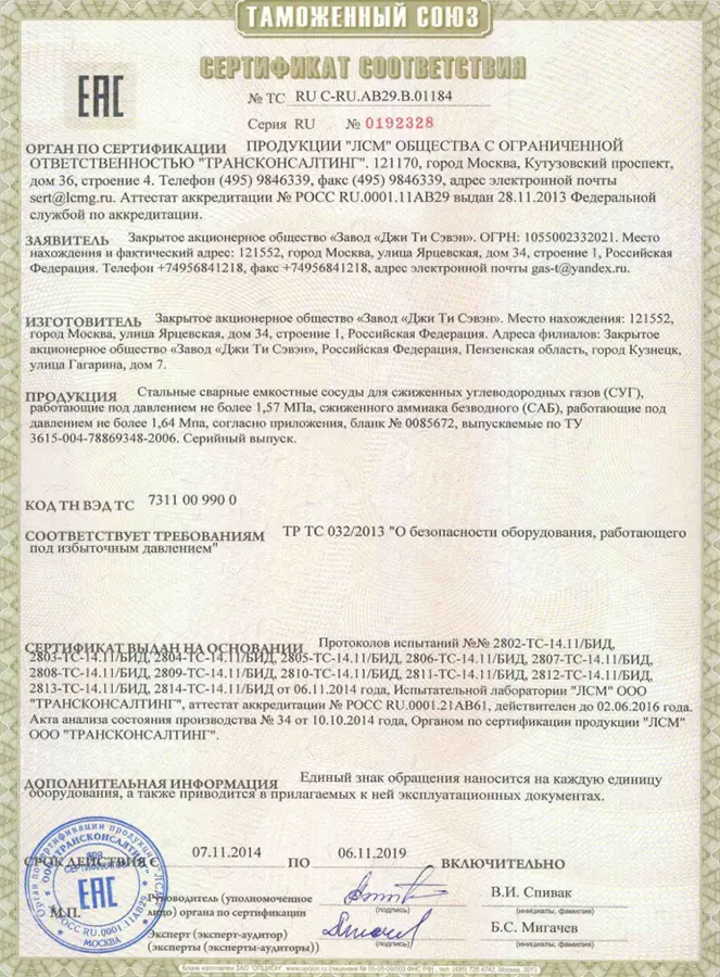 Актуальную цену на заправку газгольдера уточняйте у специалиста по контактным данным на сайте